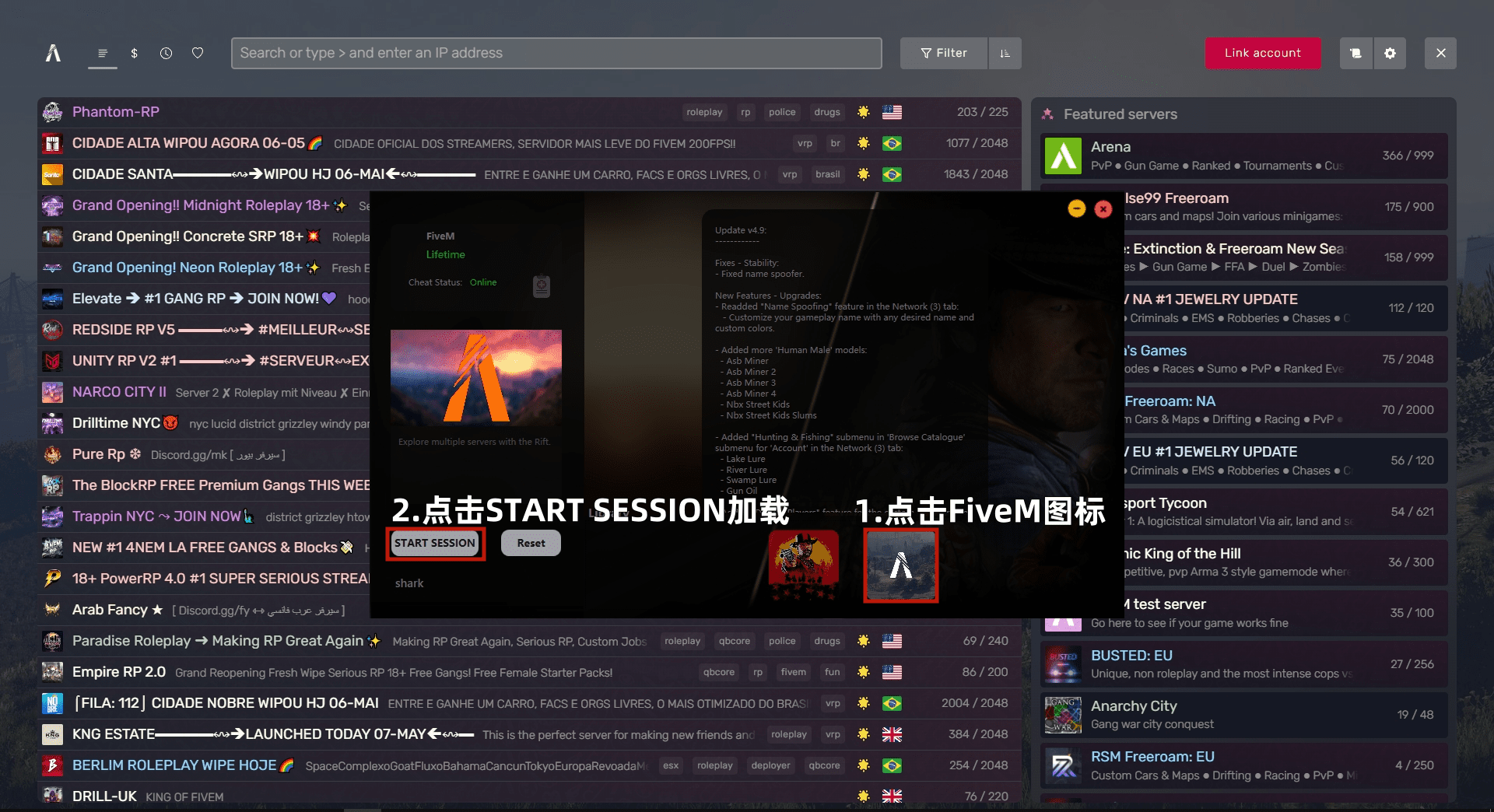 等加载完成后,点击注入器内的START SESSION/加载菜单